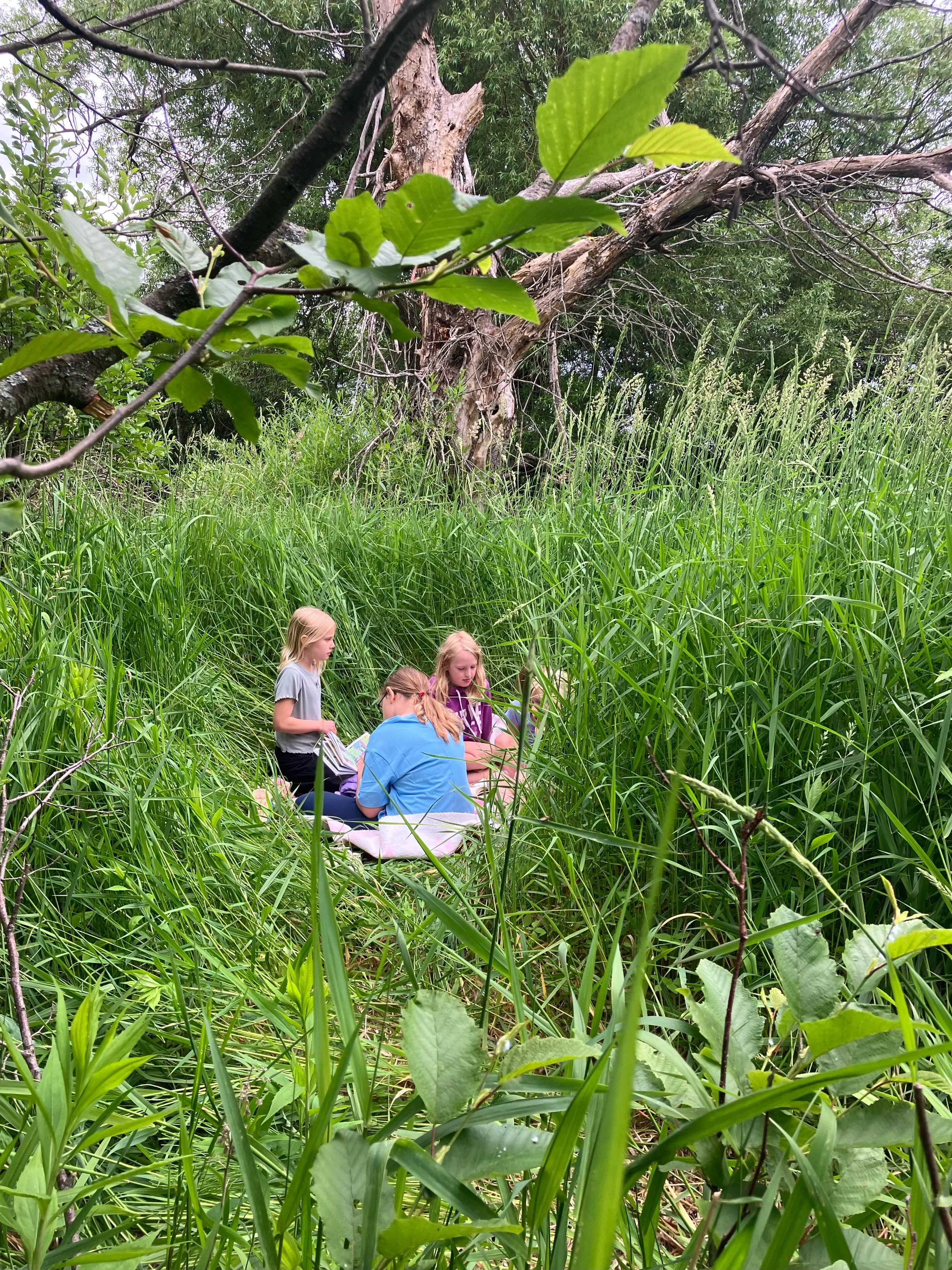 In late summer, camp activities will center on peak blooms, pollinators, and creative exploration. Campers are generally found collecting natural materials, observing plants and insects in the meadow and forest, enjoying creek time, and taking part in nature-inspired art and hands-on projects.